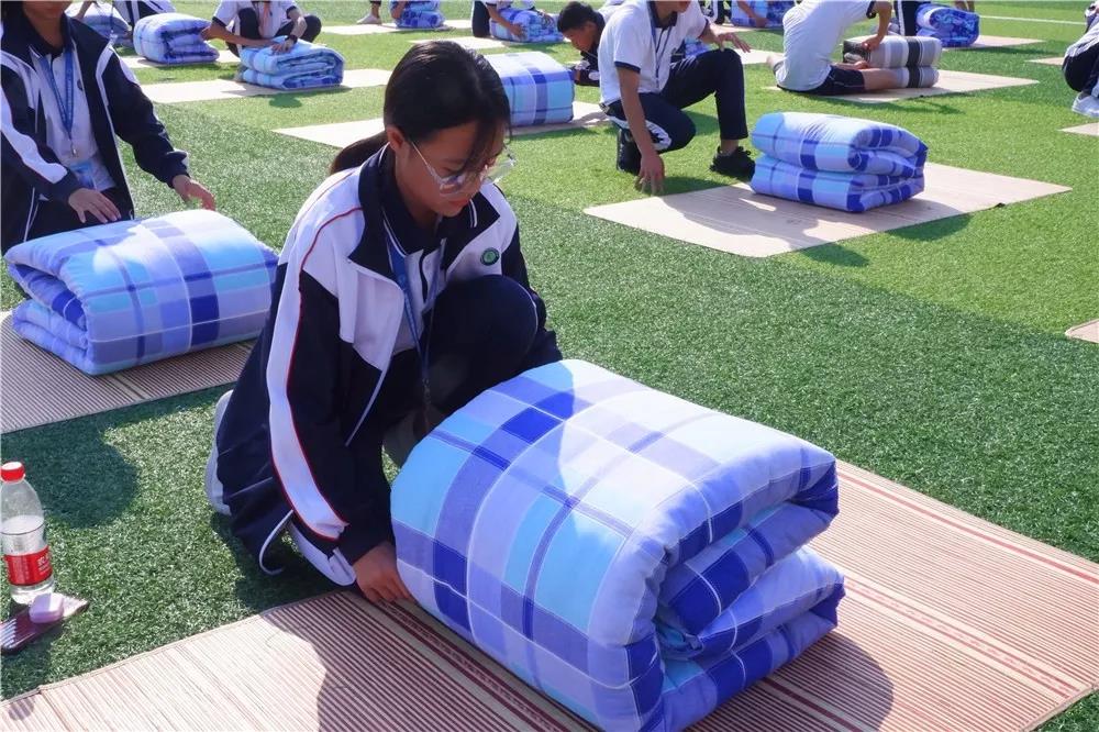 活動(dòng)開場,全體師生奏唱校歌,很快激烈的疊被子比賽開始了。比賽實(shí)行分組對抗淘汰制,三局定勝負(fù)。