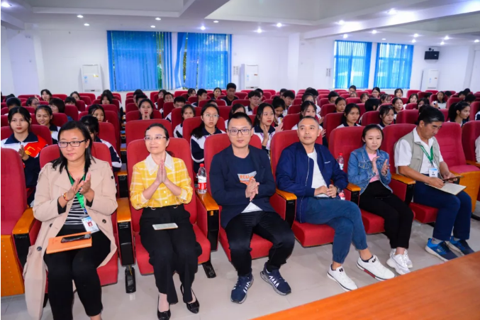 谷希歐公司董事長袁應權、總經理陳彥榮、業務骨干雷麗紅,高新技校校長助理孫建華、教務處處長田春元、經貿系主任向莎莎、商務外語專業負責人劉敏、17商務外語高技班主任陳靜儀、商務外語組全體教師出席了儀式,17商務外語高技班全體同學來到了現場。17商英高技班諸敏同學擔任了本次儀式的主持。