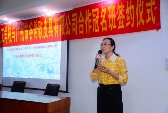 10月28日下午4:30,廣東省高新技術高級技工學校與廣州市谷希歐皮具有限公司合作冠名班簽約儀式于學校天培樓會議室舉行。