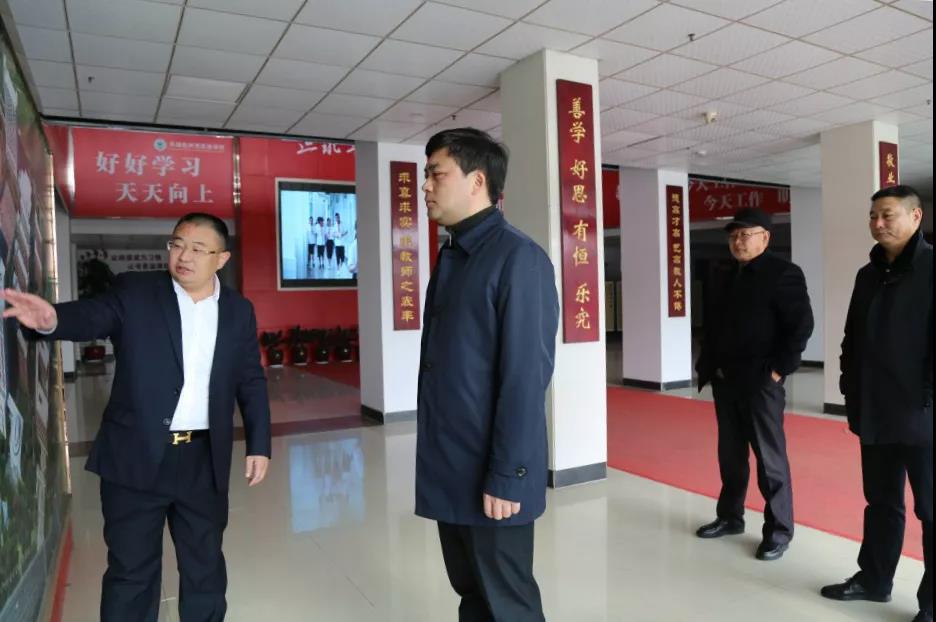 何縣長一行參觀了學校校園,全面考察學校環境和現代化的設施設備,對我校給學生營造的優越環境給予了高度贊賞。肖家興理事長對校園文化做了詳細介紹,何縣長也對我校的特色文