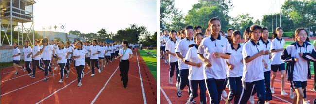 第一縷晨曦射穿薄霧,迎來清晨,我校足球場上早已青春飛揚,各系部的同學們以整齊的步伐和響亮的口號喚醒高新校園,這是我校學生每天晨跑活動的場景。