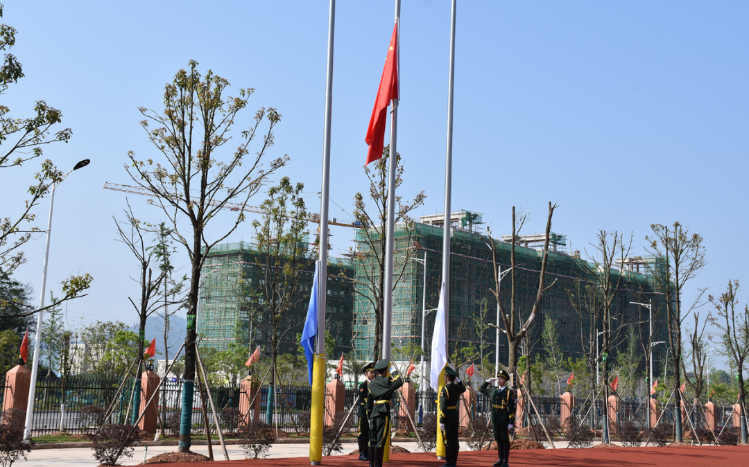 春光明媚,花開(kāi)正好,旗手在學(xué)校操場(chǎng)上將鮮艷的五星紅旗冉冉升起,全體師生起立,高唱國(guó)歌,隔空向國(guó)旗行注目禮。