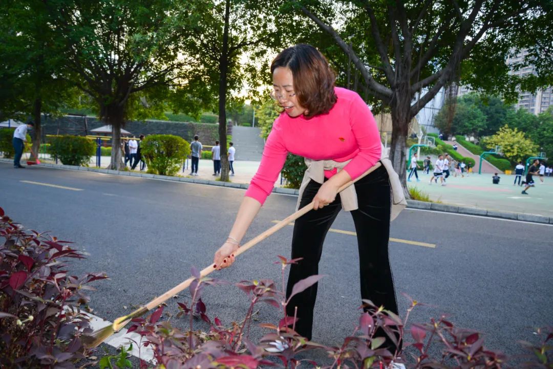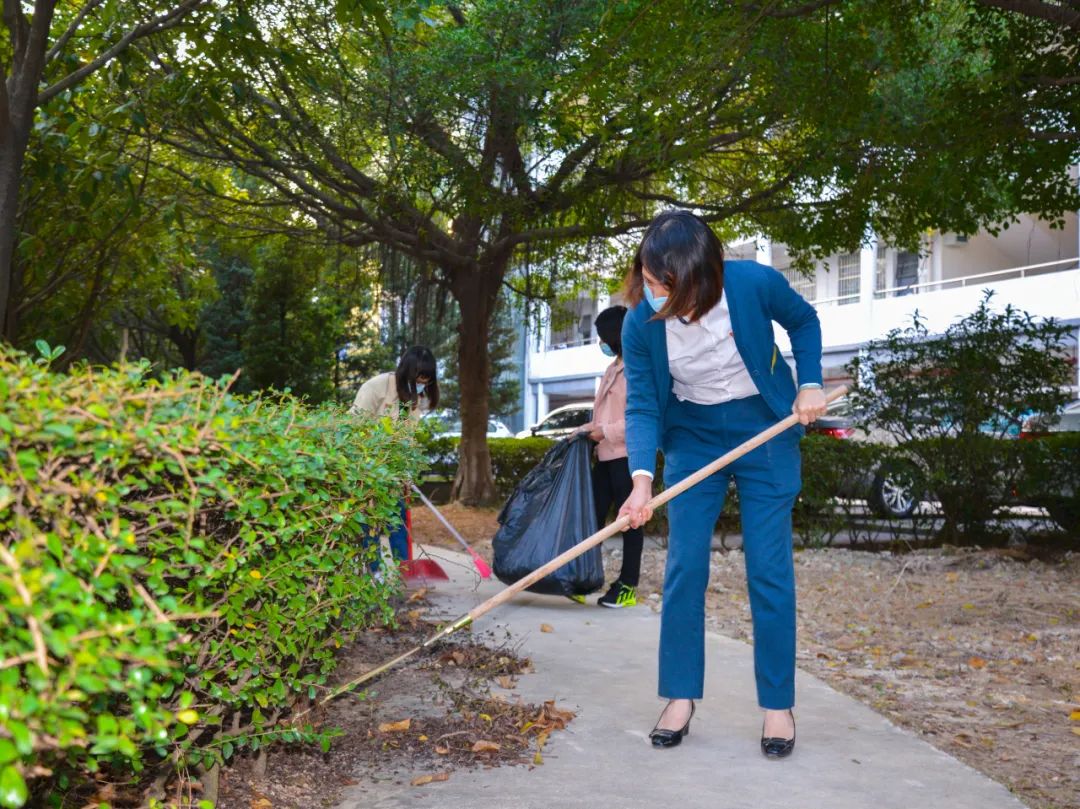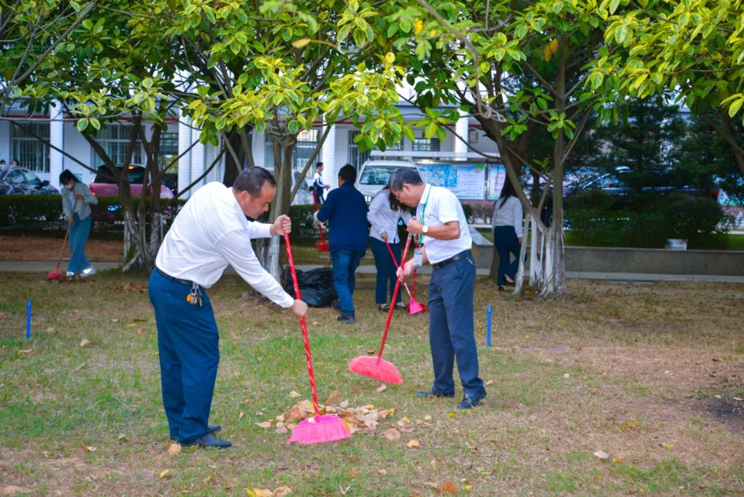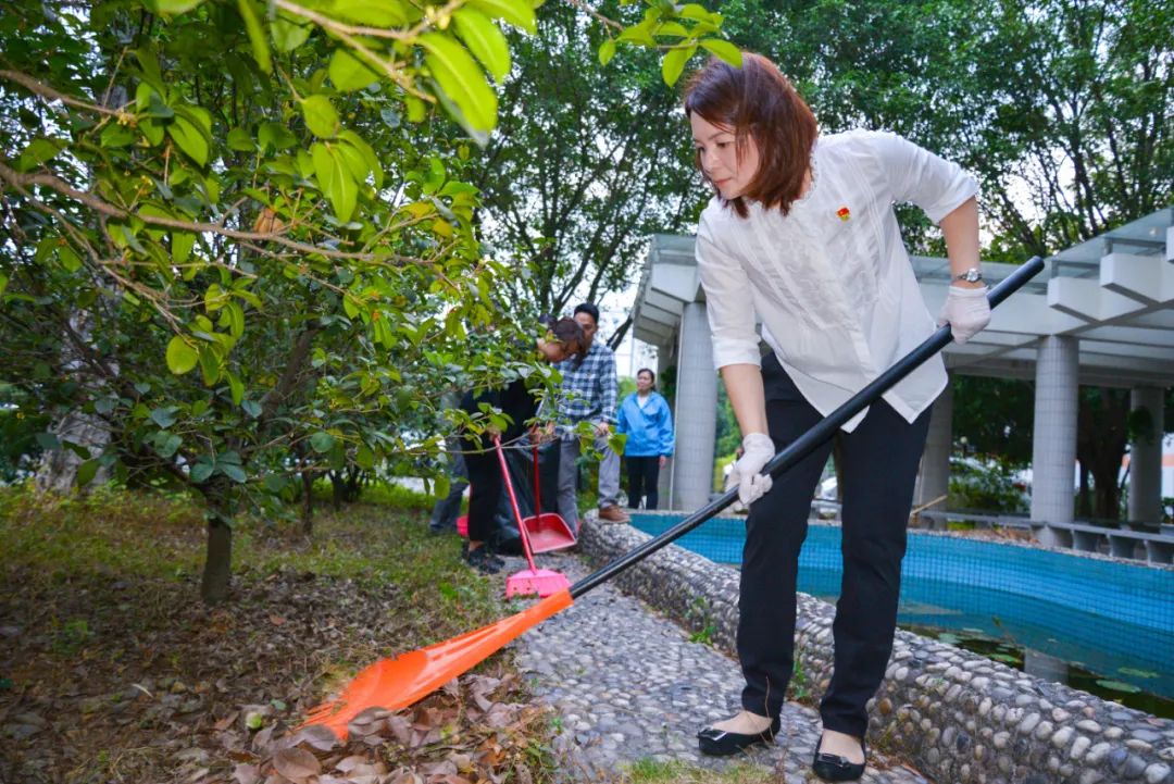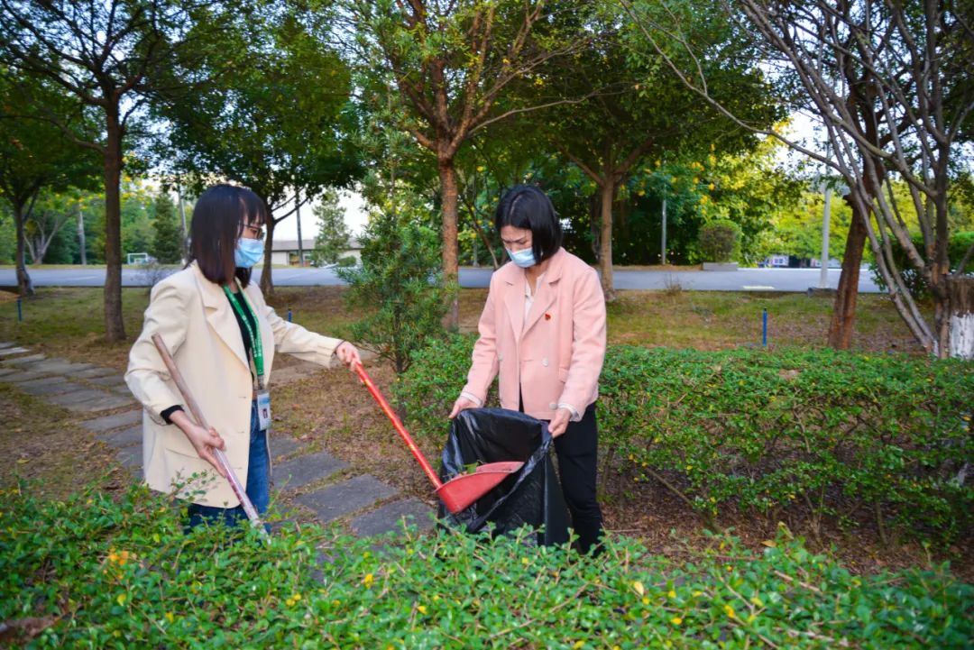 黨員們佩戴黨徽,情緒高漲,熱情飽滿,清理中堅(jiān)樓小樹林及厚德大道等區(qū)域綠化帶中的落葉,不放過(guò)任何死角,大家勞動(dòng)的身影猶如一道亮麗的風(fēng)景。