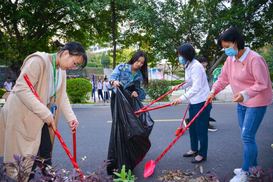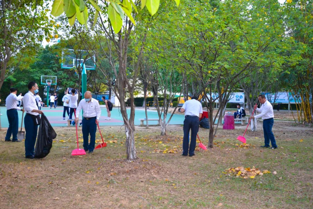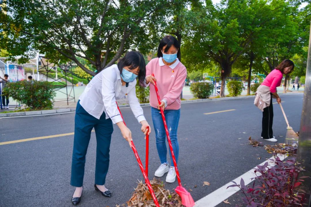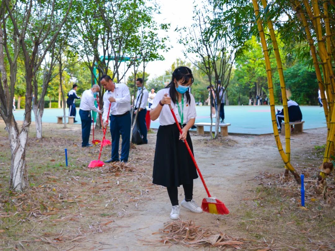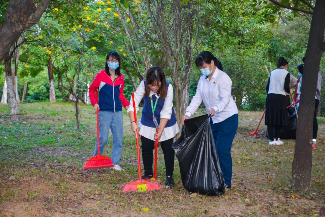 黨員們佩戴黨徽,情緒高漲,熱情飽滿,清理中堅(jiān)樓小樹林及厚德大道等區(qū)域綠化帶中的落葉,不放過(guò)任何死角,大家勞動(dòng)的身影猶如一道亮麗的風(fēng)景。