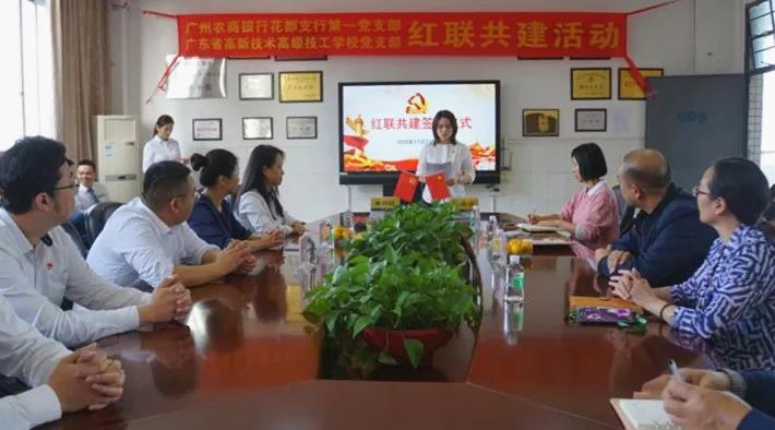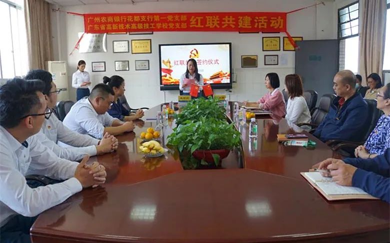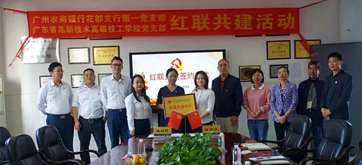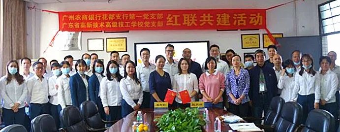 為進(jìn)一步加強(qiáng)我校黨組織建設(shè),提升新形勢(shì)下黨支部工作成效,實(shí)現(xiàn)黨建優(yōu)勢(shì)互補(bǔ),我校黨支部與廣州農(nóng)商銀行花都支行第一黨支部舉行“紅聯(lián)共建”簽約儀式,開展黨建共建活動(dòng)。