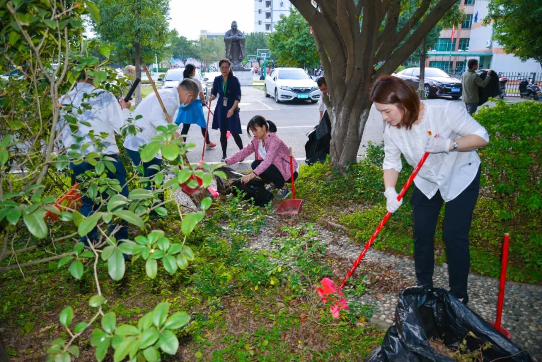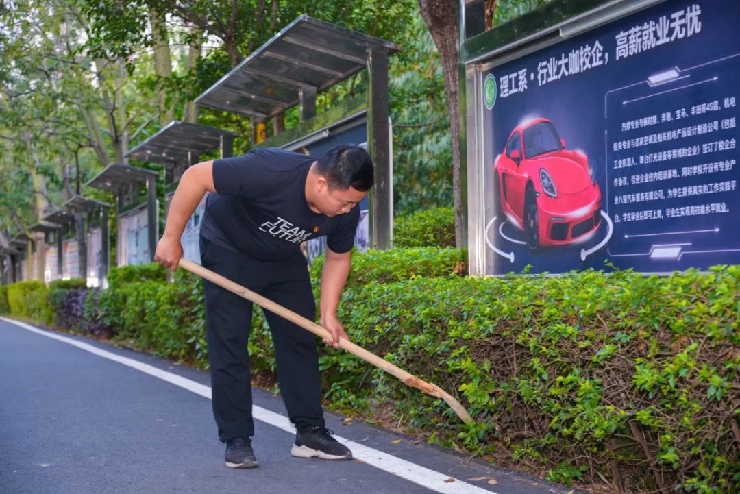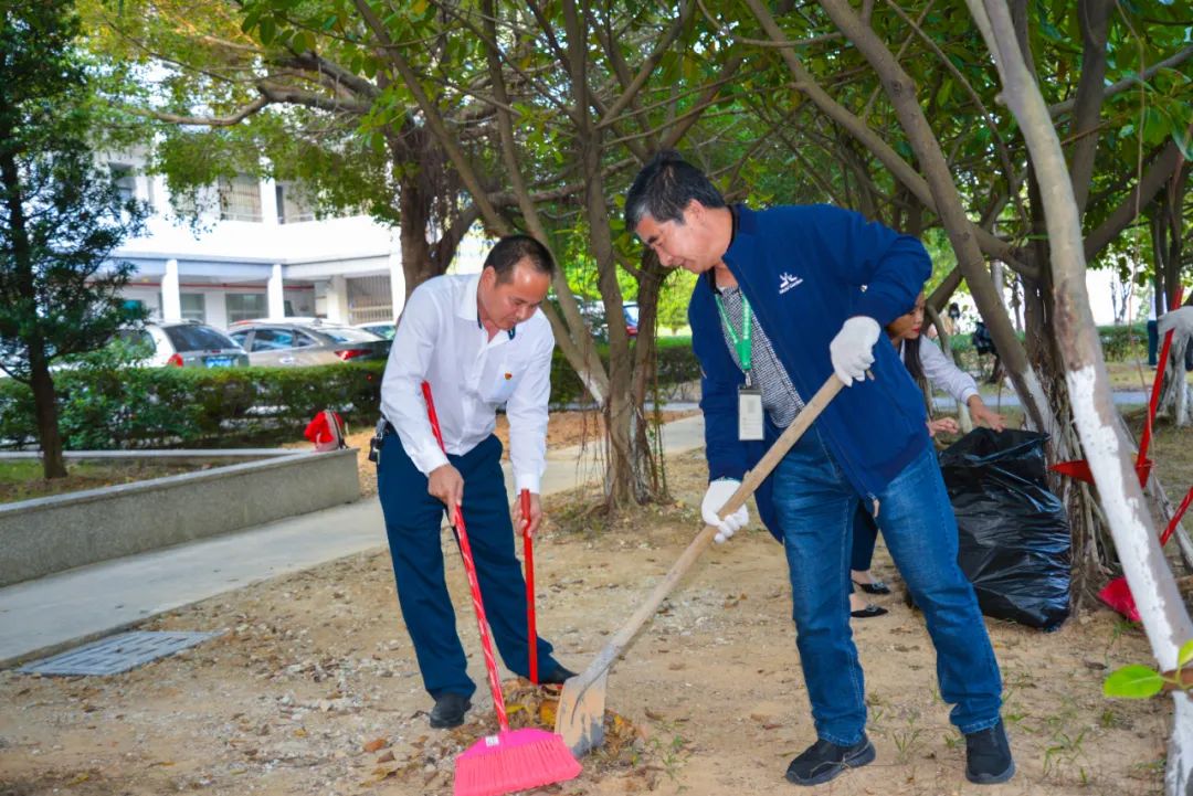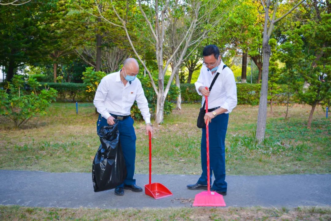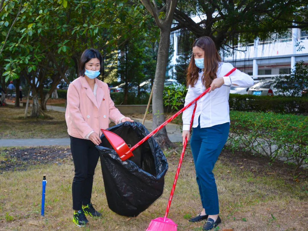 簽約儀式結(jié)束后,兩個(gè)黨支部全體黨員分成4個(gè)小組,聯(lián)合開展校園衛(wèi)生清潔活動(dòng)。