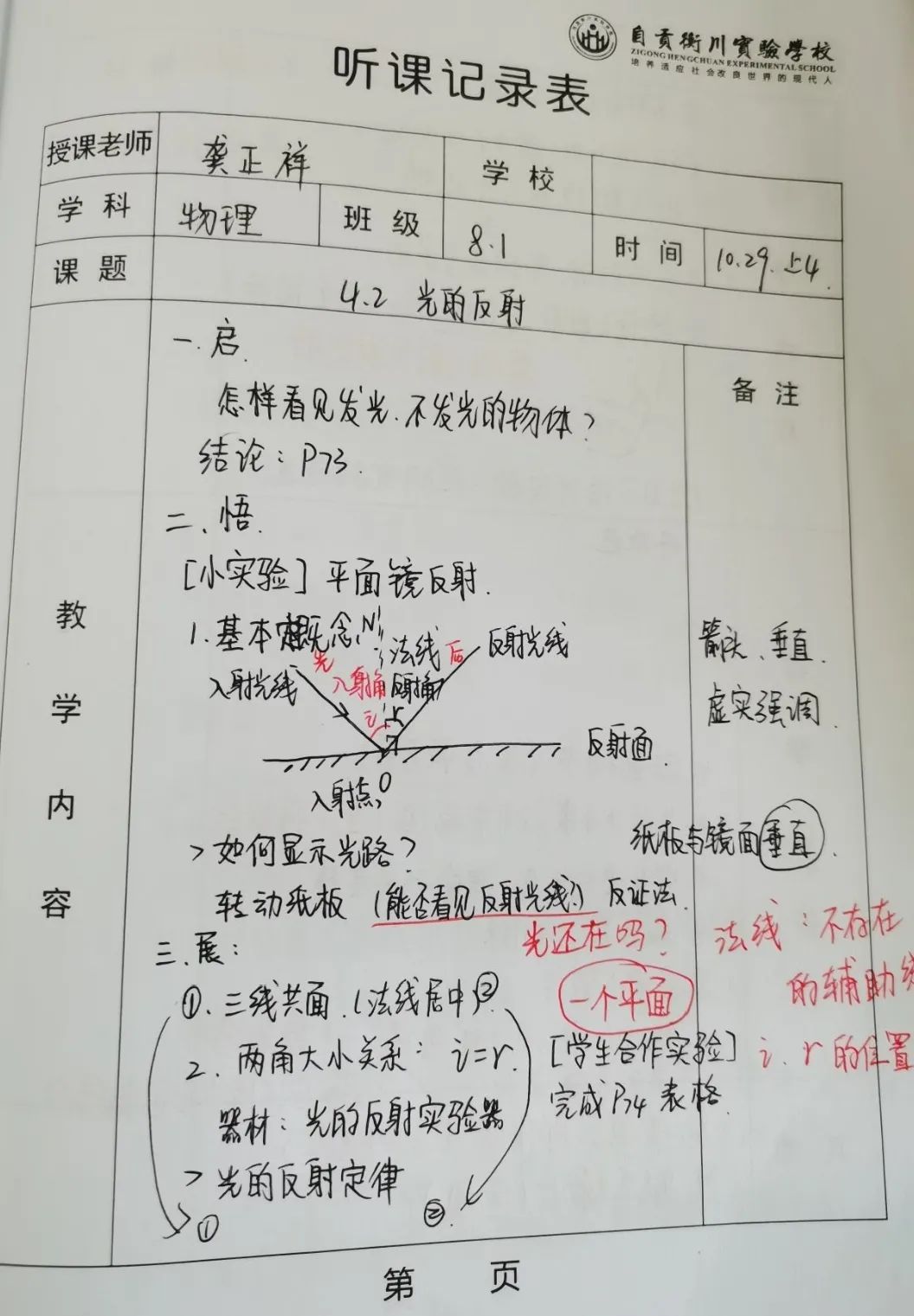 首先,聽課時不要只記錄課堂流程,更要隨時把自己所關注和思考的東西標注出來,比如對某些概念的深入闡釋,對難點的具體處理方式,對學生特定反應的應對等。